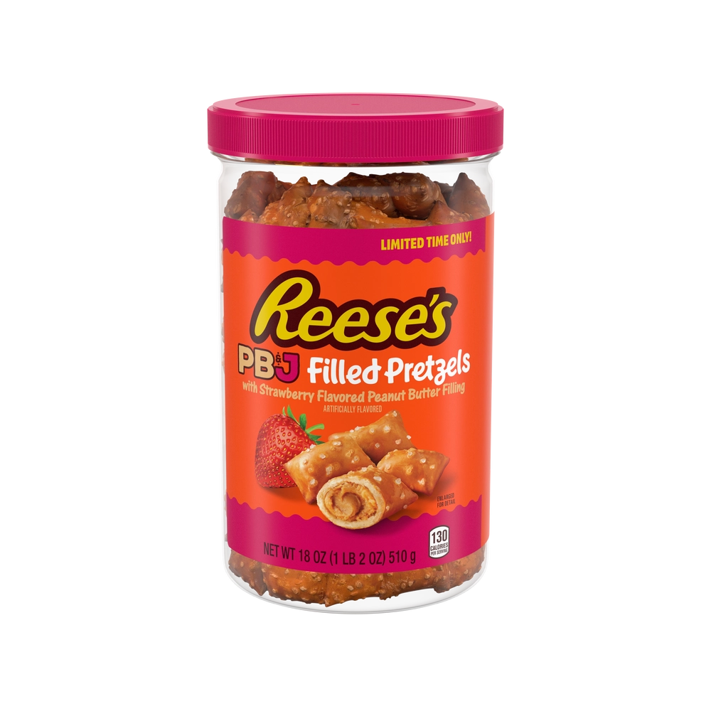 Reese’s PB&J Peanut Butter & Strawberry Filled Pretzels Jar: 18-Ounce Jar