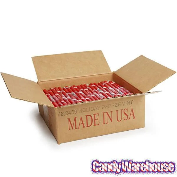 Box contains 100 individually wrapped Christmas Peppermint Hard Candy Sticks.