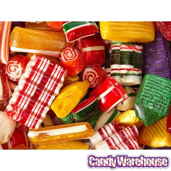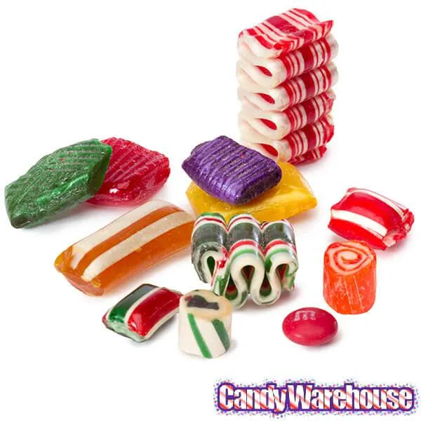 An amazing hand-packed tin of 10 different pieces, including holiday ribbons, cut rock, ovals, candy pillows, waffle squares and more! Flavors include a multitude of fruits and spices. All pieces are solid...no fillings. A wonderful holiday tradition in a beautiful gift tin!