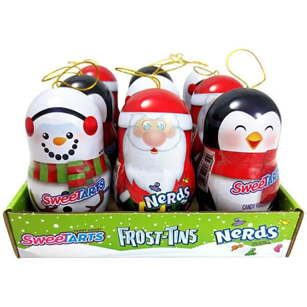 Display box contains 12 SweeTarts and Nerds Candy Tin Christmas Ornaments.