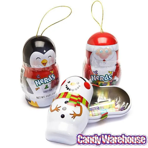 Hang these fun and festive Christmas ornaments from your tree for an extra special decoration everyone will enjoy! Each ornament features a Snowman, Santa Claus, or Penguin character, and contains either SweeTarts or Nerds candy.