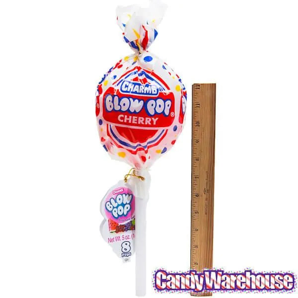 Display box includes 6 Giant Blow Pops Containers, each enclosing 8 regular Blow Pops.
