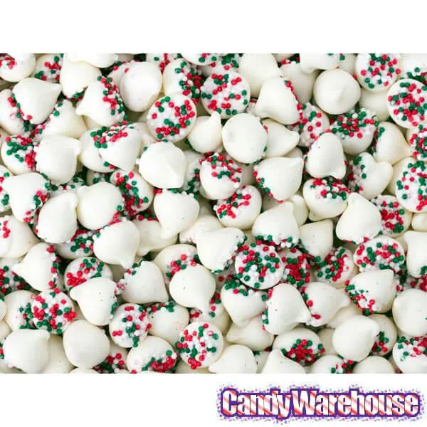 Bag contains 5 pounds of Petite White Chocolate Chips with Christmas Nonpareils Candy.
