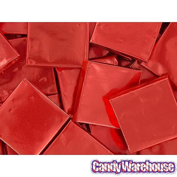 Box contains 5 pounds of Red Foil Wrapped Dark Chocolate Mint Squares Candy.
