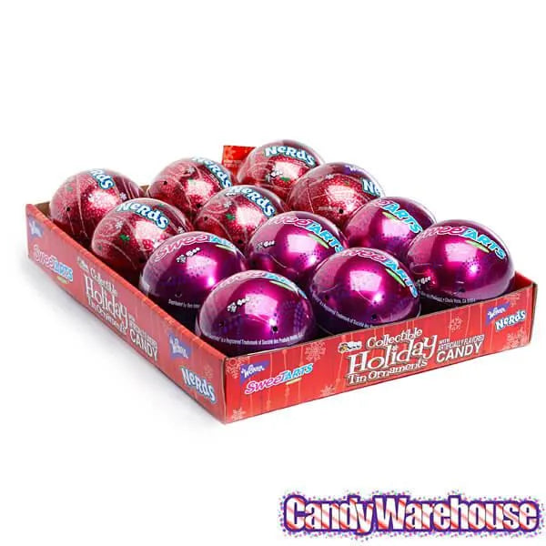 Display box contains 12 SweeTarts and Nerds Candy Tin Christmas Ornaments.