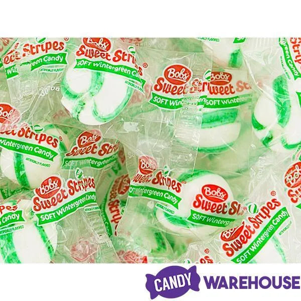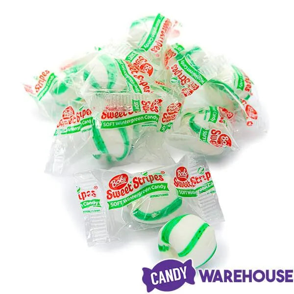 Bag contains 50 individually wrapped Bob's Sweet Stripes Soft Wintergreen Candy.
