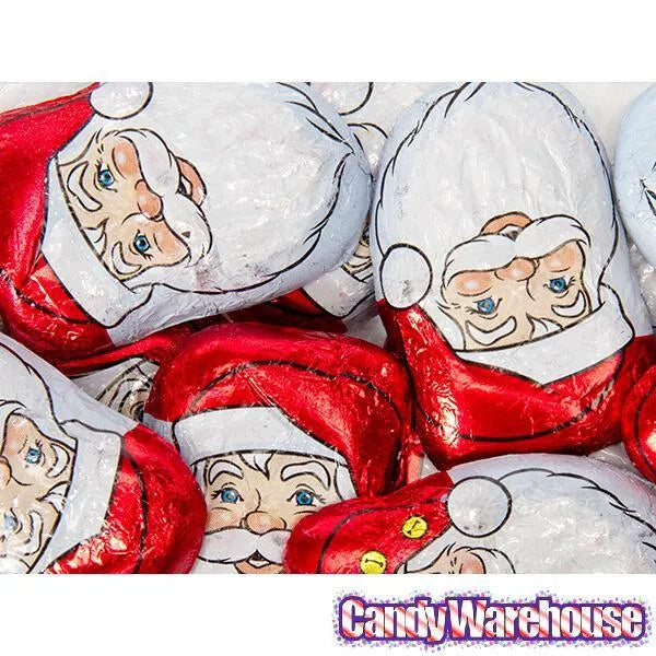Bag contains 4 pounds of Foiled Milk Chocolate Santas with Caramel Filling.