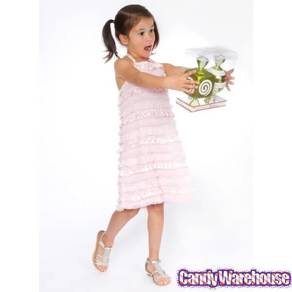 Want to have the sweetest Christmas tree on the block? Of course you do! Help score that coveted title with this duo of over-sized ornaments. They’re real show-stoppers, so to be frank, you needn’t reserve these little beauts solely for the tree -- dangle them anywhere that strikes your fancy! From stairways and mantels to wintry window displays, these lime green plastic ornaments look elegant in any nook. One is decorated with stripes, the other with swirls, and both shimmer in the light as they twist on their wires. They’re sure to brighten up any holiday party… just make sure no one tries to give ‘em a lick! Plastic doesn’t taste too great.