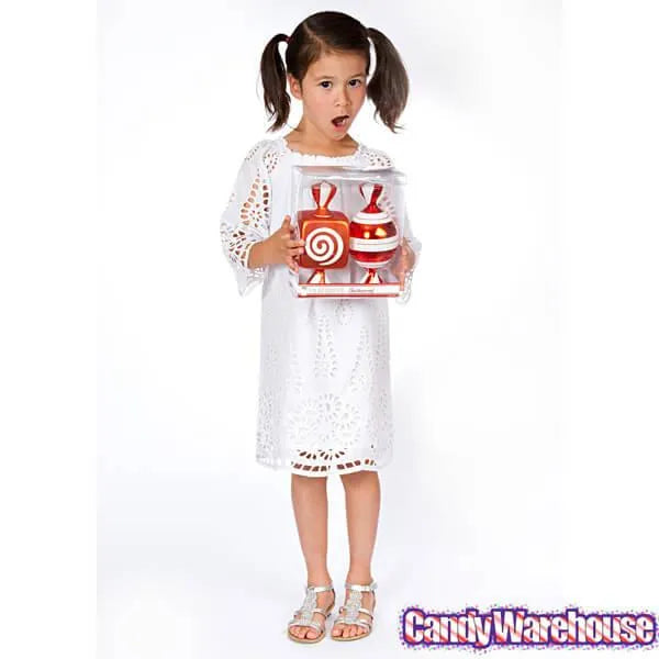 Want to have the sweetest Christmas tree on the block? Of course you do! Help score that coveted title with this duo of over-sized ornaments. They’re real show-stoppers, so to be frank, you needn’t reserve these little beauts solely for the tree -- dangle them anywhere that strikes your fancy! From stairways and mantels to wintry window displays, these orange plastic ornaments look elegant in any nook. One is decorated with stripes, the other with swirls, and both shimmer in the light as they twist on their wires. They’re sure to brighten up any holiday party… just make sure no one tries to give ‘em a lick! Plastic doesn’t taste too great.