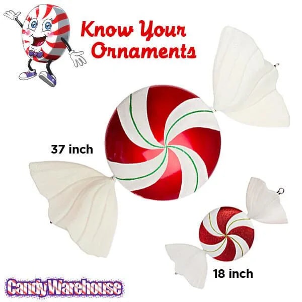 This peppermint patty rocks red and white waves of glitz and glitter, and coupled with the white flair of its wrapper, it’s a real showstopper! Dangle this treat from doorways, mantels, ceilings, and even outdoor trees. Of course, it’s made of glitter and plastic, so you probably won’t want to give it a lick (unless you’re into that sort of thing). It’s ok, though. That’s what the tinier peppermints are for.