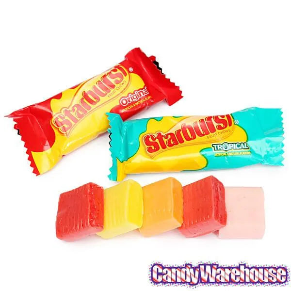 Add a burst of cheer to any stocking, gift bag, or Christmas card with these Starburst-filled plastic candy canes. Boasting jubilant red tops that pop off to expose the individually wrapped goods within, they bespeak of merriment and glee without bespeaking of blandness or high cost. Includes both Original and Tropical flavored Starbursts for twice the joy-to-the-world-ness in every eye-pleasing cane.