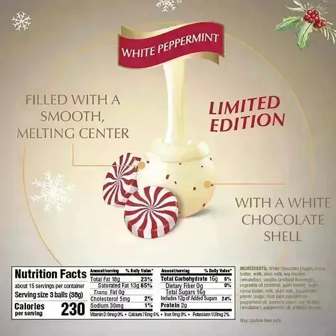 Lindt Lindor Holiday White Chocolate Peppermint Truffles: 19-Ounce Bag