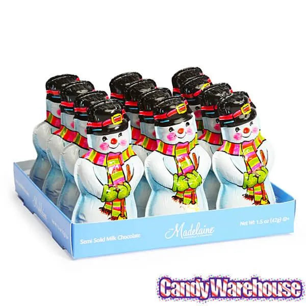 Madelaine Foiled Semi-Solid Milk Chocolate Snowmen: 12-Piece Display