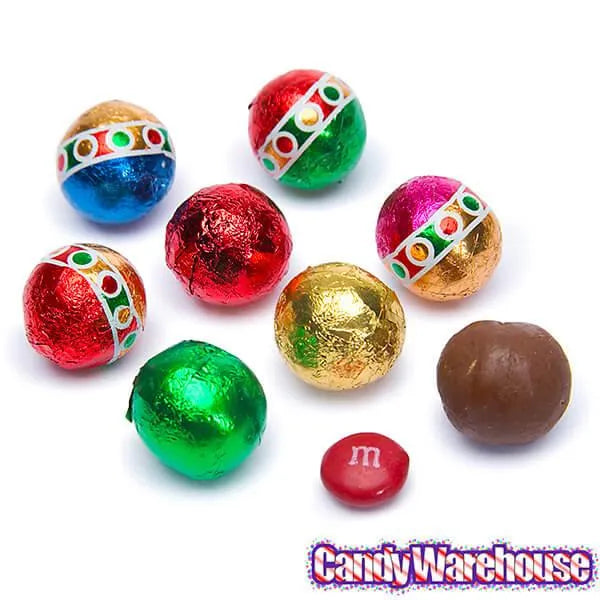 Madelaine Christmas Foiled Milk Chocolate Balls 2-Ounce Mesh Bags: 24-Piece Tub