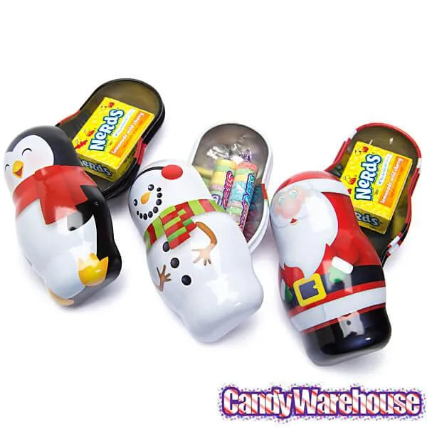 Bee International Candy Tin Christmas Ornaments - Santa, Snowman and Penguin: 12-Piece Box