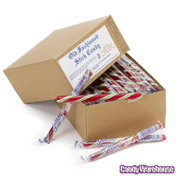 Refreshing, just like a slice of fruit on a warm summer day. Wait, these fruit slices aren’t exactly like slices of fruit. There are a few differences including the fact that they are sticks, seedless, and candy. Nevertheless, they’re still incredibly refreshing. Perfect for events, add this 80-piece box of individually wrapped red and green hard candies to the candy buffet table or party favor bags--just maybe not the fruit bar. Proudly exhibit Gilliam old fashioned candy sticks in one of our handsome display racks: 6-Jar Rack 12-Jar Rack