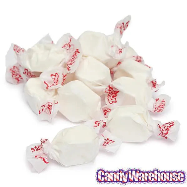 Bag contains 2.5 pounds of Gourmet Vanilla Salt Water Taffy Candy.
