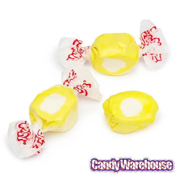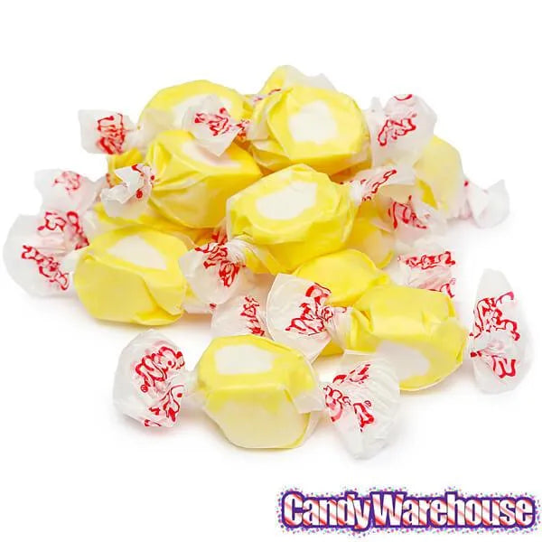 Bag contains 2.5 pounds of Gourmet Lemon Meringue Salt Water Taffy Candy.