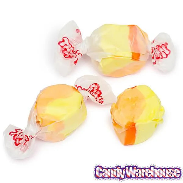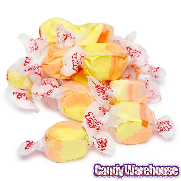 Bag contains 2.5 pounds of Gourmet Apricot Salt Water Taffy Candy.