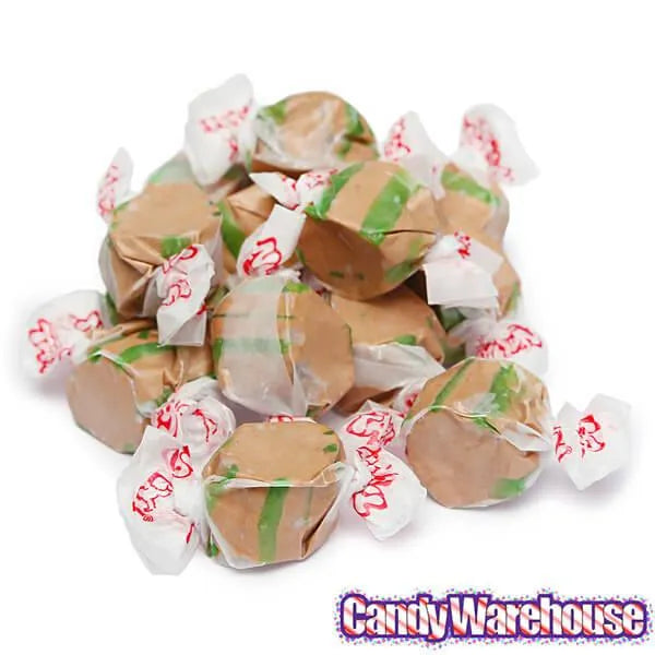 Bag contains 2.5 pounds of Gourmet Chocolate Mint Salt Water Taffy Candy.