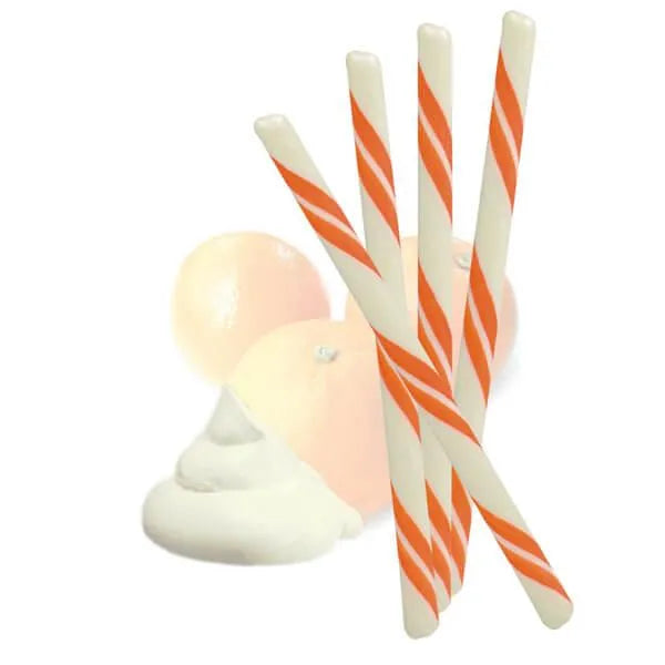 Box contains 100 individually wrapped Orange Cream Circus Hard Candy Sticks.