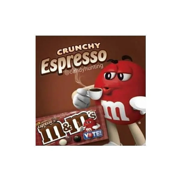 Espresso flavored dark chocolate drops with rice crisp centers are coated with a thin candy shell to create these M&M's candies.