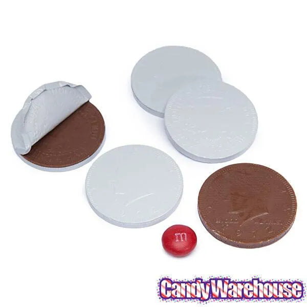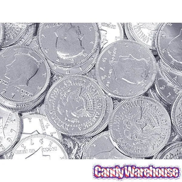 Silver Foiled Milk Chocolate Coins: 1LB Bag