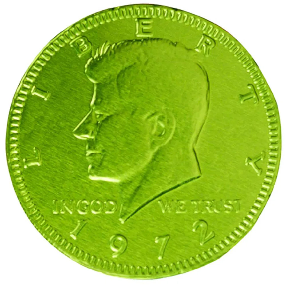 Kiwi Green Foiled Milk Chocolate Coins: 1LB Bag
