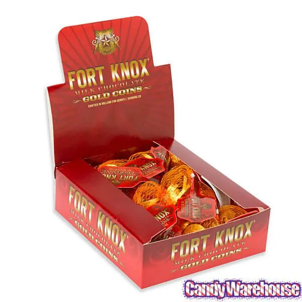 Fort Knox Gold Foiled Milk Chocolate Coins in Mesh Bags: 12-Piece Box