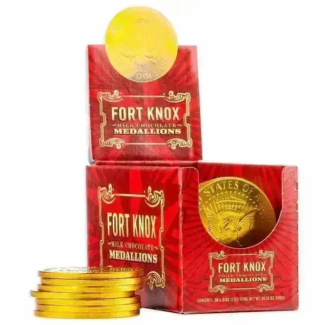Fort Knox Gold Foiled Milk Chocolate US Dollar Medallions: 30-Piece Box