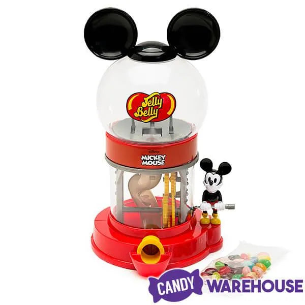 For Jelly Belly fans and Disney fanatics alike, this Mickey Mouse Bean Machine makes the perfect delivery system for your favorite jelly beans! The clear globe at the top of the machine is adorned with Mickey ears, as if it has just returned from a trip to Disney World, and the base of the globe is rimmed with the faces of his classic cartoon friends. Everyone’s favorite animated mouse sits at the bottom at the contraption, lever in hand, ready to being cranking at the push of his handle! Watch as the real, working gears turn, causing the jelly beans to drop through the transparent blue chute -- just don’t be too mesmerized to remember to collect them before anyone else can swoop in and steal your chewy treasure!