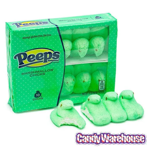 Pack contains 10 Green Peeps Chicks Marshmallow Treats.