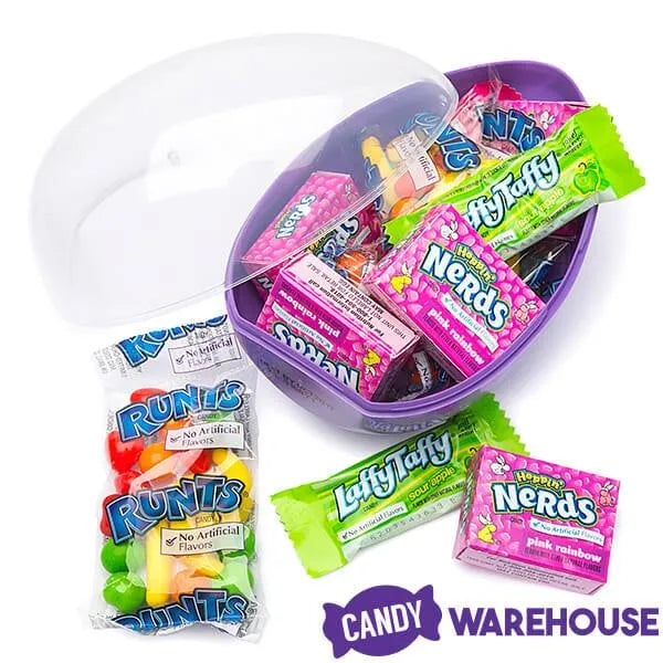 Perfect for spring gift baskets and Easter egg hunts alike, this fun plastic egg is stuffed with with an assortment of wonderful Willy Wonka candy packs, including: