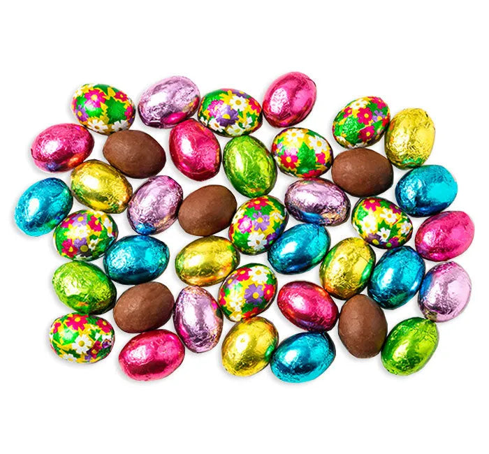 Ideal for candy stores, specialty retailers, and seasonal setups, these foil wrapped Easter eggs work well in self-serve bulk bins, repackaged gift bags, and Easter basket builds. The assorted foil colors and patterns help attract attention and encourage impulse purchases during the busy spring candy season.