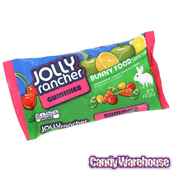 Bag contains 9 ounces of Jolly Rancher Bunny Food Gummy Candy.