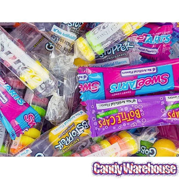 This year's Easter egg hunt could be filled with all your favorite Wonka brand candy:Everlasting GobstoppersSweeTartsOriginal SpreeBottle CapsBag contains 18 ounces of various Wonka Easter Egg Filler Bulk Candy Packs.Shipping Weight ~ 1.5 lbs.