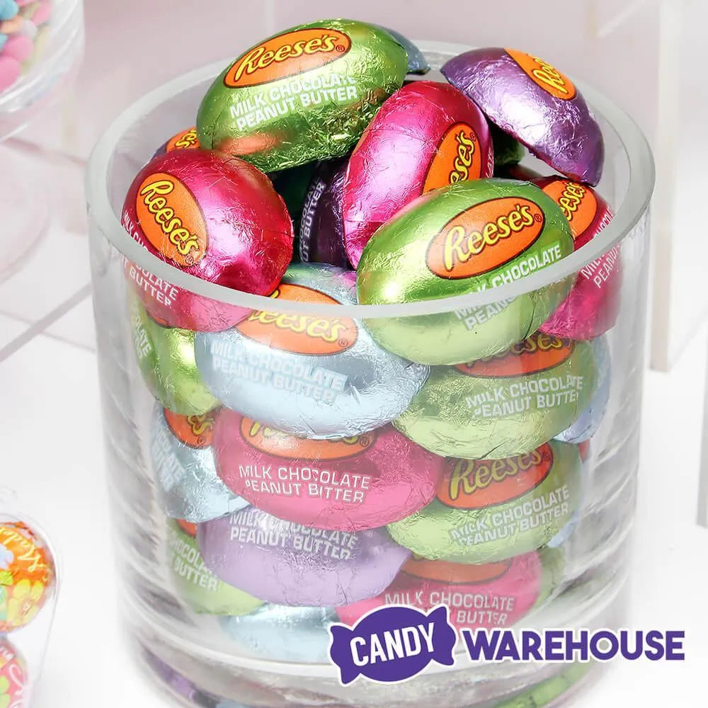 Naturally, before developing into a cup, the popular Reese’s candy starts off as an egg. During Easter, hundreds of dozens of them are rounded up for your enjoyment. Take this bag, complete with 50 pieces of chocolate Easter egg candy that are filled with creamy peanut butter and wrapped in individual festive colored foil wrappers for the egg hunt, candy buffet, or personal delight. In either scenario, tongues will experience the combination of smooth rich flavor with these Reese's peanut butter mini eggs.
