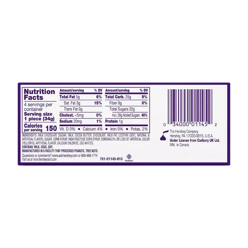 Gift box contains 4 foil-wrapped Cadbury Créme Eggs, each with a net weight of 1.2 ounces.