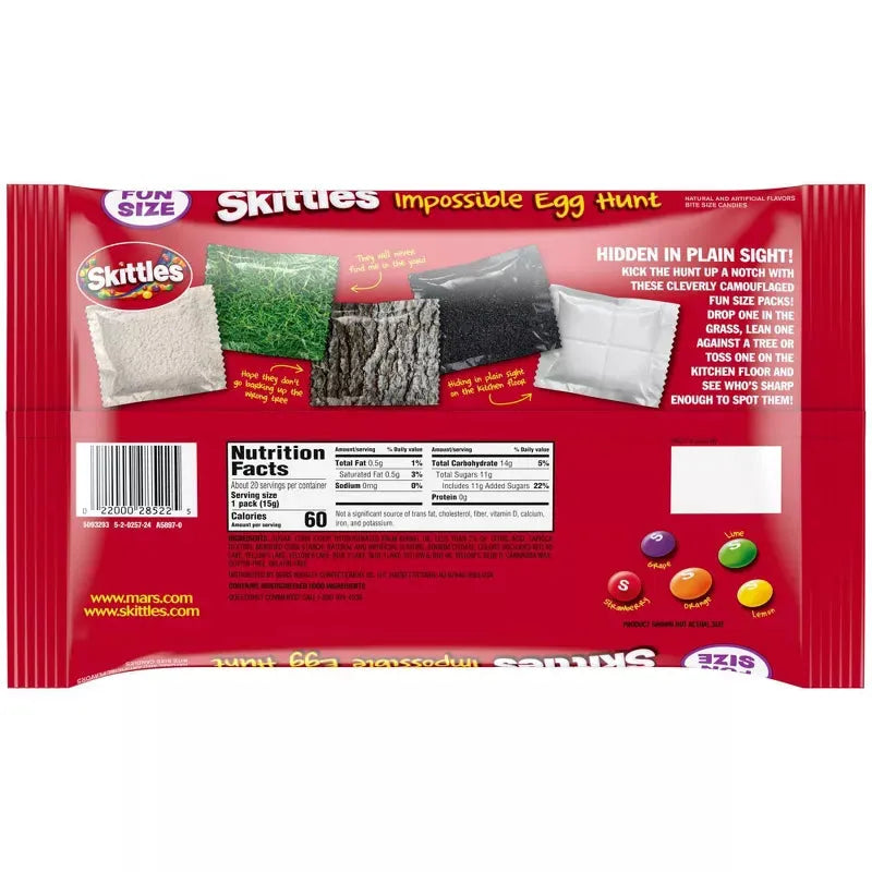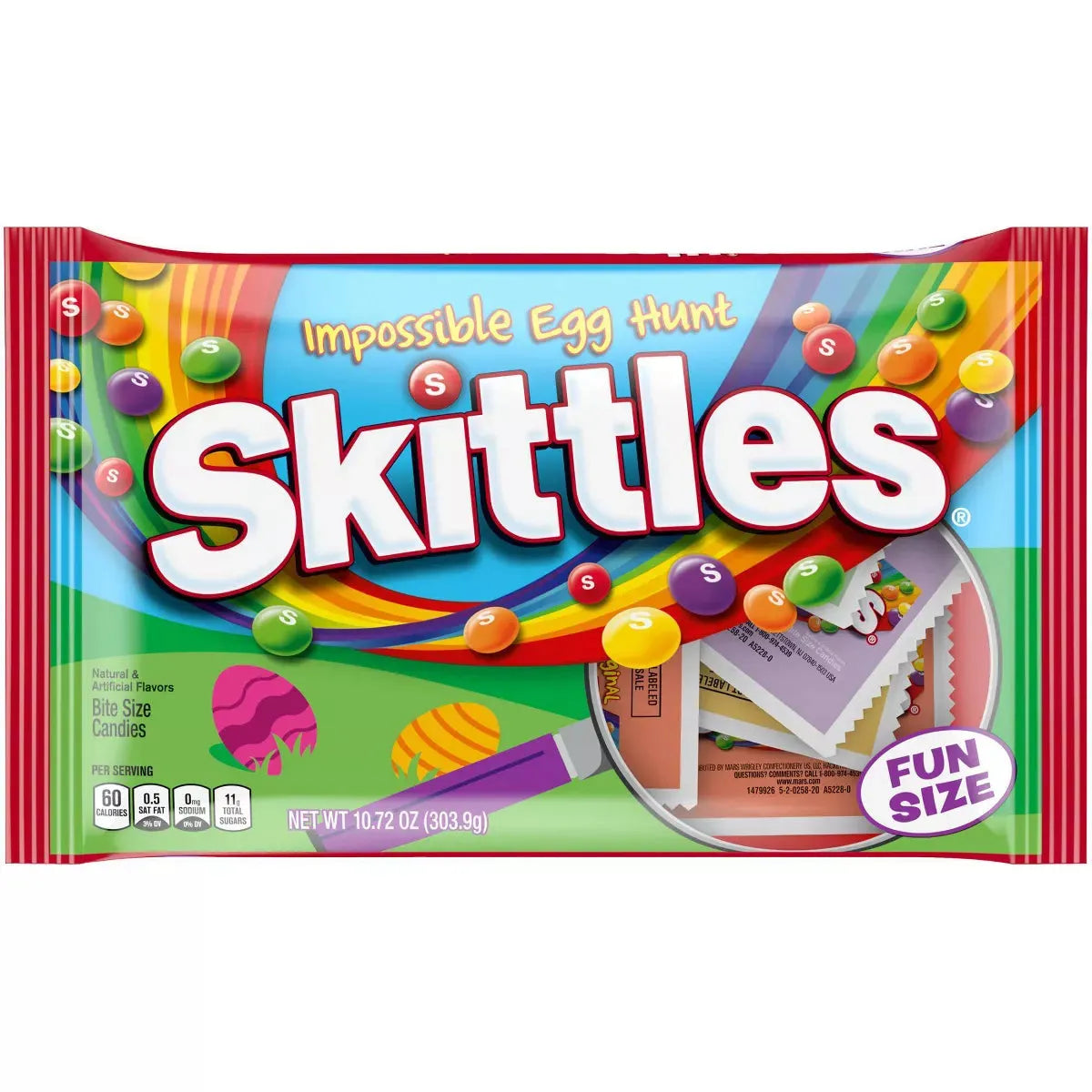 Classic original fruit flavored Skittles in fun size packs of assortment pastel colors. Perfect for Easter events!Bag contains 20 Easter Themed Fun Size Packets of Skittles Candy with a total net weight of 10.72 ounces.