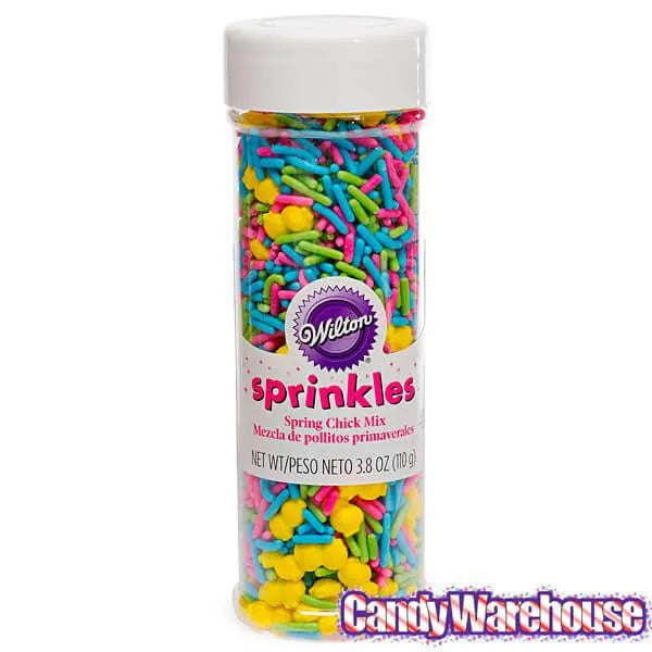 Dispenser bottle contains 3.8 ounces of Chicks and Jimmies Mix Sprinkles.
