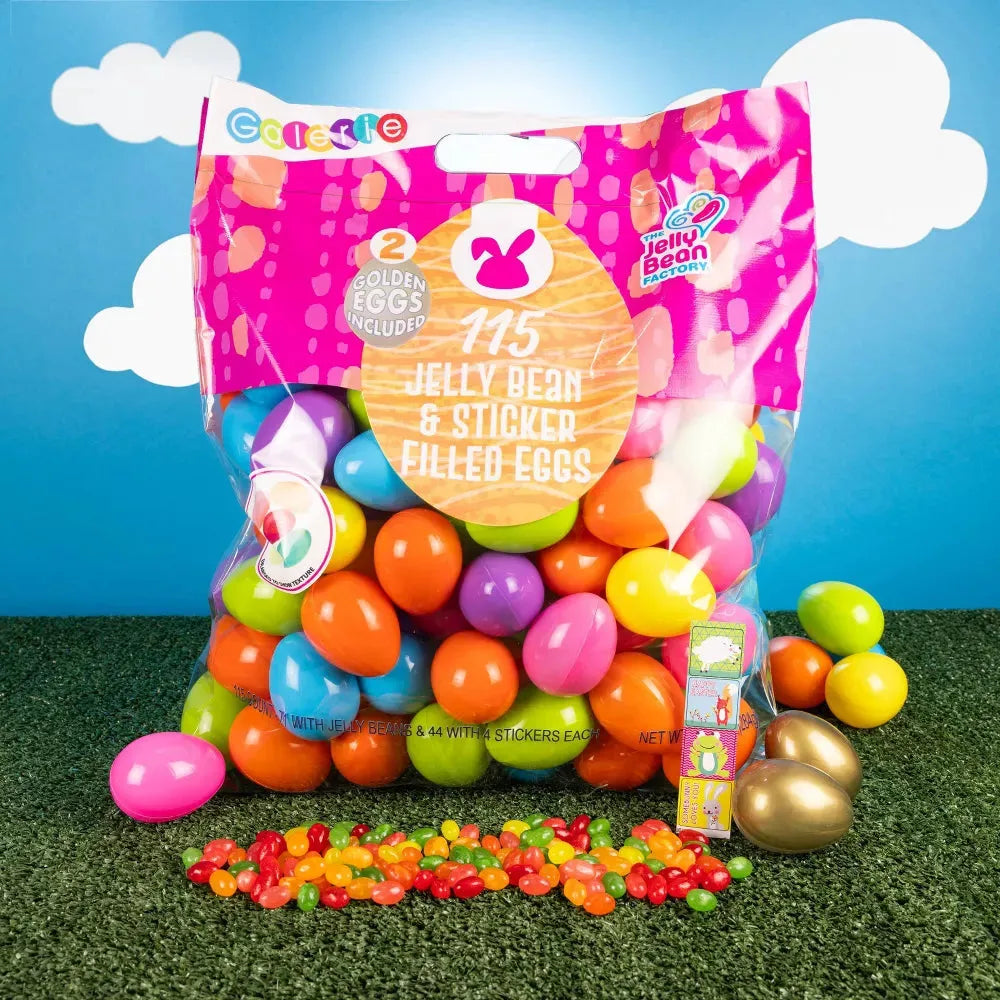 Easter Eggs Filled with Jelly Beans and Stickers: 115-Piece Bag
