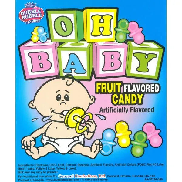 You no longer need to be under the age of three to nibble a pacifier! Even better than that tasteless rubber or plastic, these bite-sized blue hard candies have a deliciously fruity crunch. Plus they’re completely ingestible!