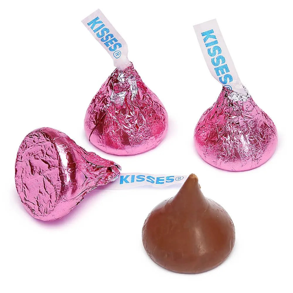 There are approximately 100 pieces per pound of bulk pink Hershey Kisses. Total of 1,100 pieces!