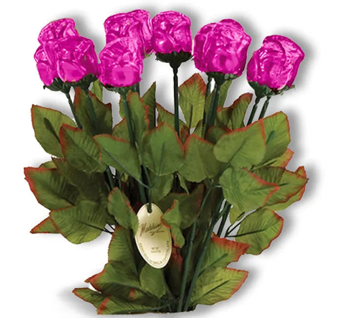 Madelaine Foiled 1/2-Ounce Solid Milk Chocolate Roses - Pink: 12-Piece Box