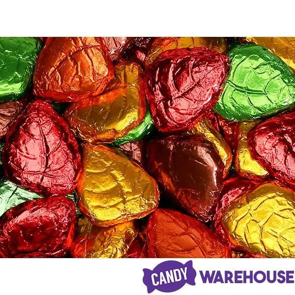Don't you love that crisp, fresh smell in the air during the fall? Well, these yummy milk chocolate leaves don't smell anything like that --- they smell sweet and chocolatey -- and they taste even better! Each piece is wrapped in shiny metallic foils featuring the colors of autumn.