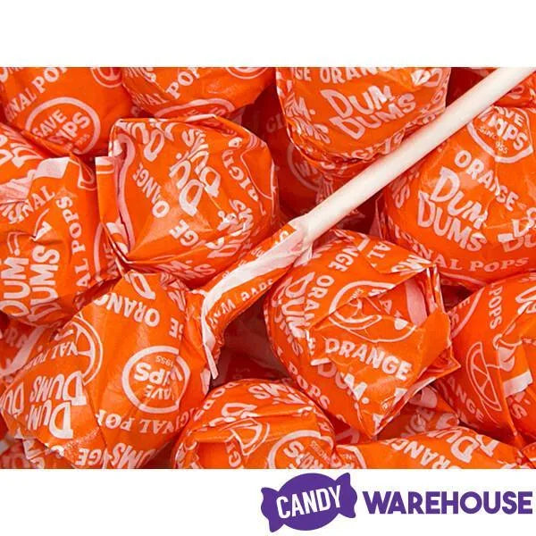 Bag contains 5 pounds of Orange Dum Dums Orange Party Pops.
