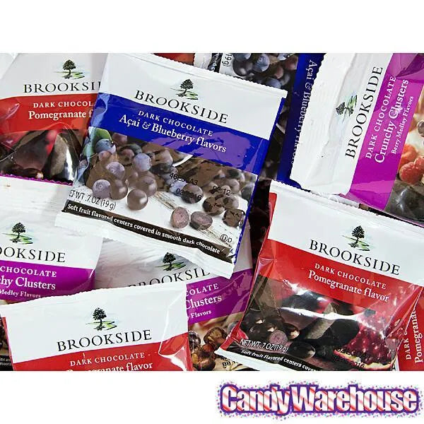 Bag contains 48 snack packs of Brookside Dark Chocolate Assortment Candy.