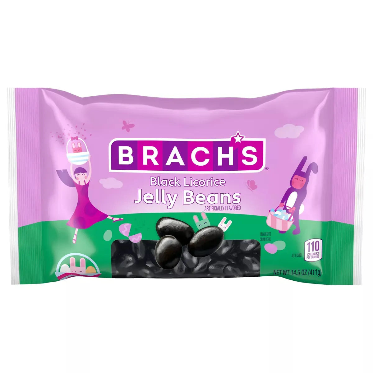 Bag contains 14.5 ounces of Brach's Black Licorice Jelly Bird Eggs Jelly Beans... that's about 140 pieces.
