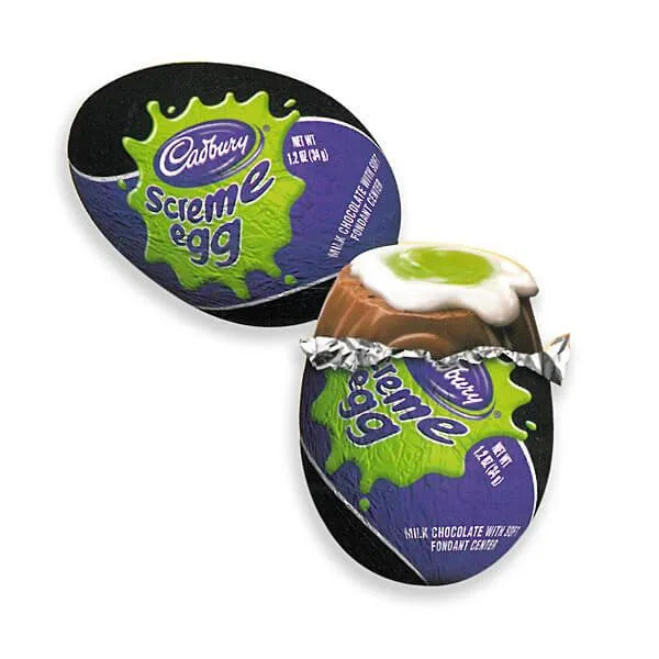 If you're a fan of Cadbury Creme Eggs, you know how hard it is to wait 365 days for Spring to come. Now you don't have to wait so long to savor the chocolate, gooey creaminess that only Cadbury can bring you! Inside the same milk chocolate shell of these Cadbury Screme Eggs you will find a spooky green and white sugary surprise. So good it'll make you SCREAM!