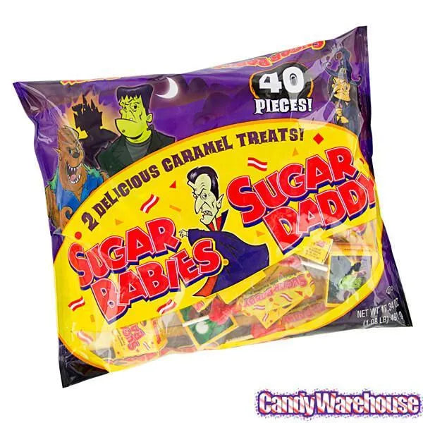 Dig into this mouth-watering combo pack of Sugar Babies and Sugar Daddies! You get yummy candy coated milk caramels in handy snack size packs as well as the old-fashioned milk caramel pops! Each Sugar Babies box features a spooky Halloween character. These classic candies will be hit at your Halloween party and with trick-or-treaters!